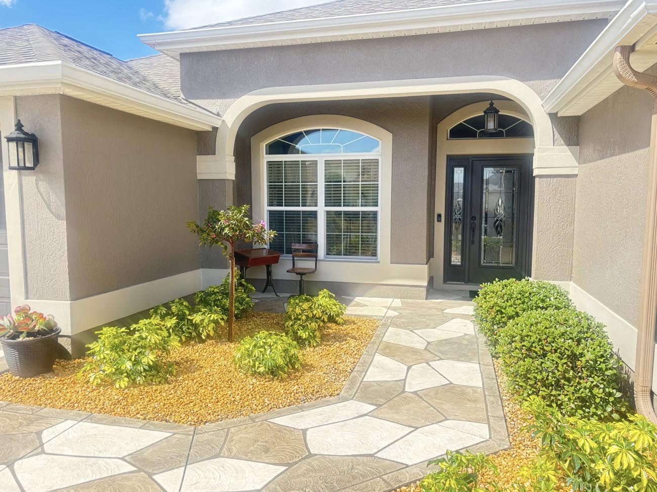 Decorative stone walkway and landscape border installation